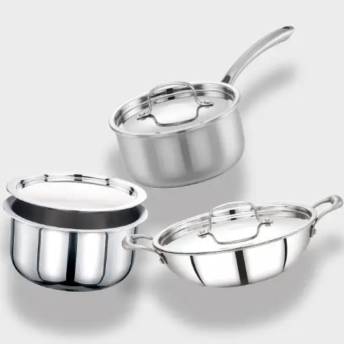 A premium range of stainless steel cookware crafted for durability and long-lasting performance.
